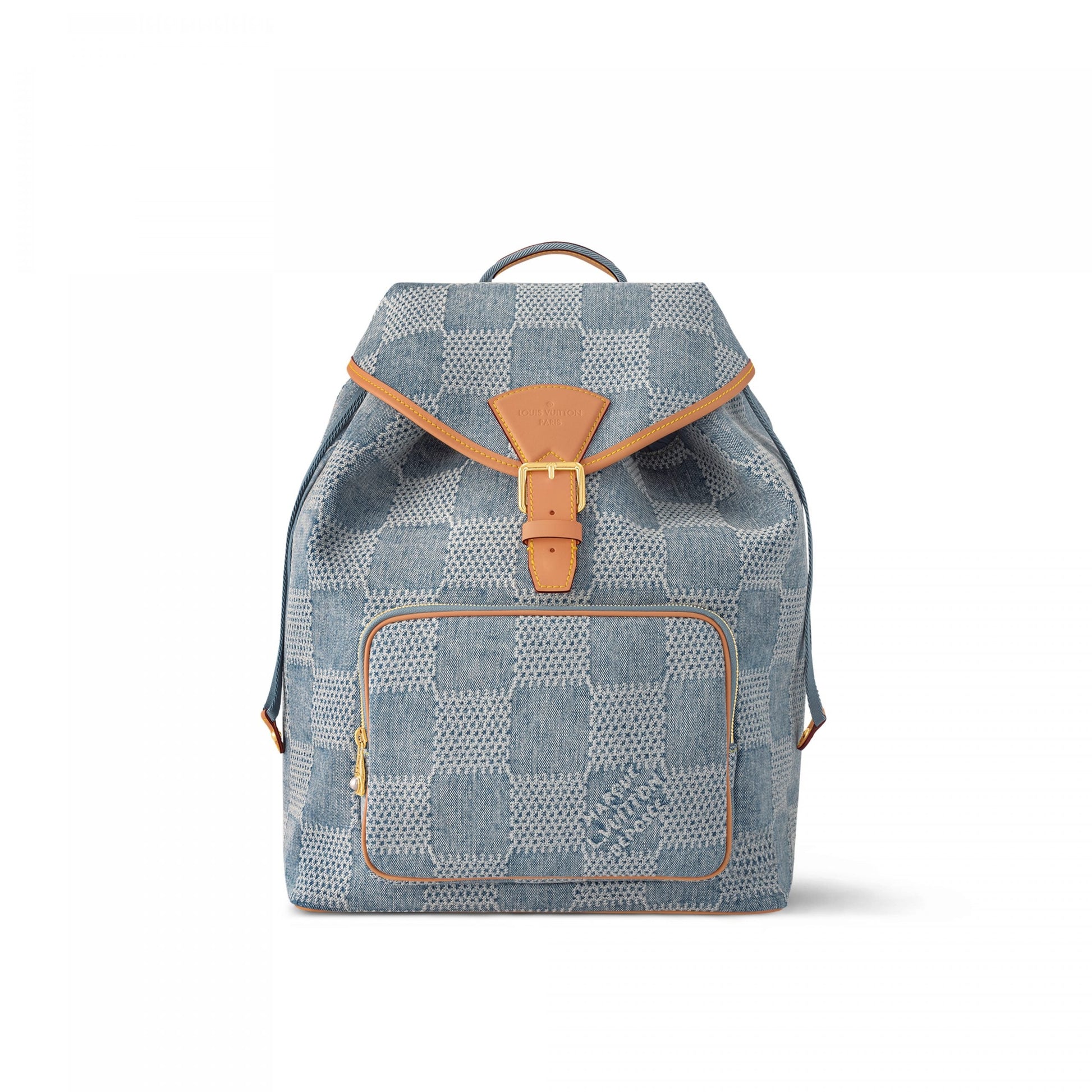 The spacious Montsouris Backpack is made from Pharrell Williams’ Damier Denim 3D cotton canvas, trimmed with natural leather. This denim version of the iconic Damier checkerboard makes the Montsouris Backpack both body-friendly and casually stylish. The drawstring and magnetic closure bring practicality while the emblematic Montsouris buckle evokes Louis Vuitton’s heritage.