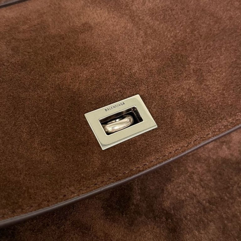 Color & Material: Light espresso waxed suede calfskin and smooth calfskin, aged-silver hardware