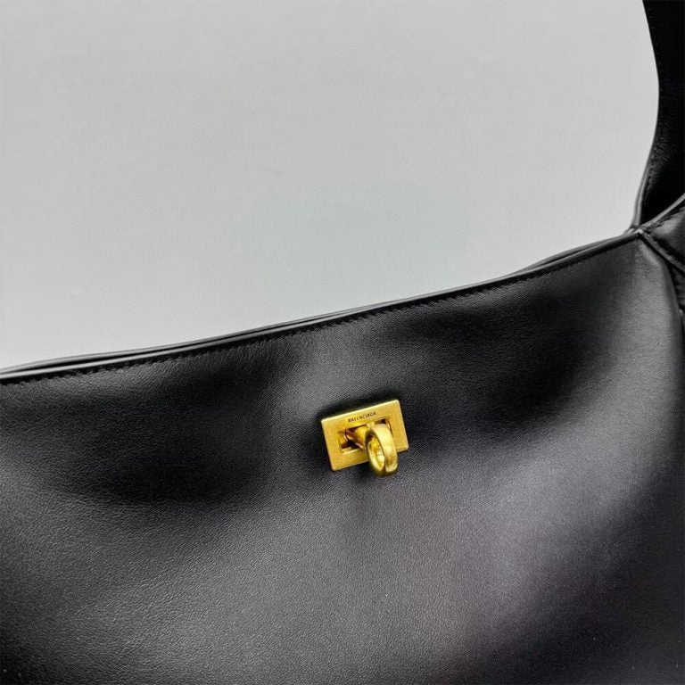 Color & Material: Black smooth calfskin, aged-gold hardware