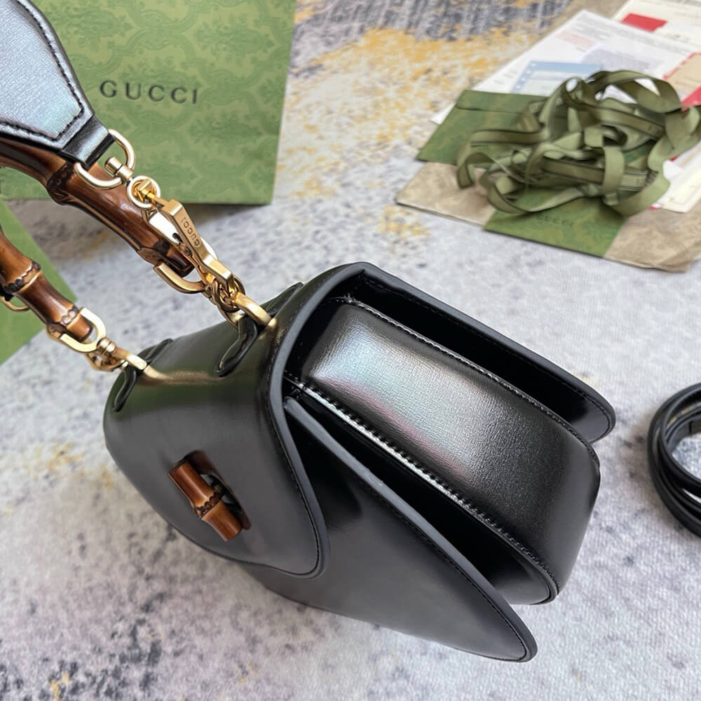 - Crafted from black leather with antique gold-toned bamboo hardware.