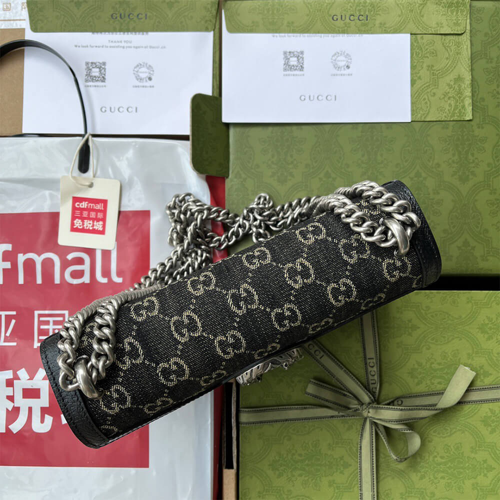 Material: Black and ivory GG denim jacquard with black leather trim
