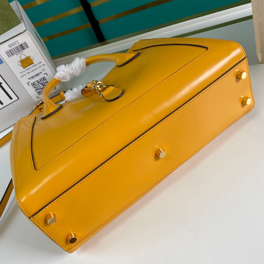 - High-quality 1:1 replica Gucci medium tote in vibrant yellow leather.