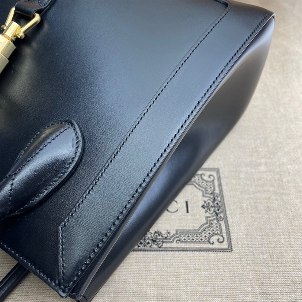 - Premium 1:1 replica Gucci medium tote bag in black leather.