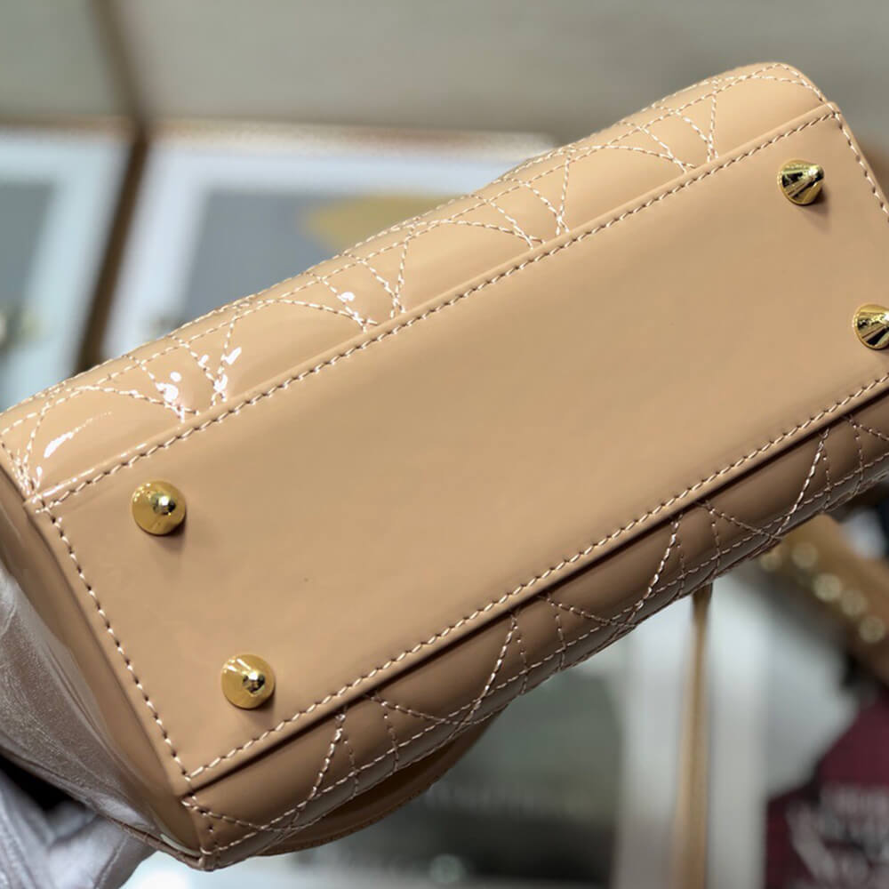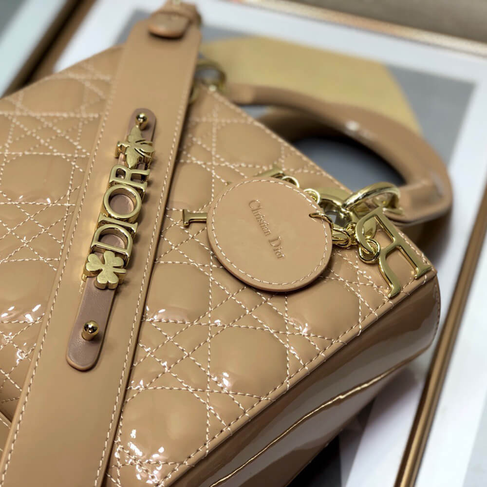 - Elegant Dior handbag in Brown Patent Calfskin.