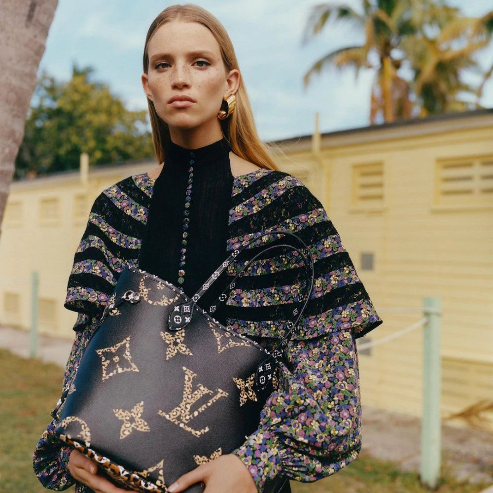 🌟 A daring reinterpretation of the Neverfull MM — Monogram canvas meets bold animal prints for a look that blends timeless style with adventurous flair.