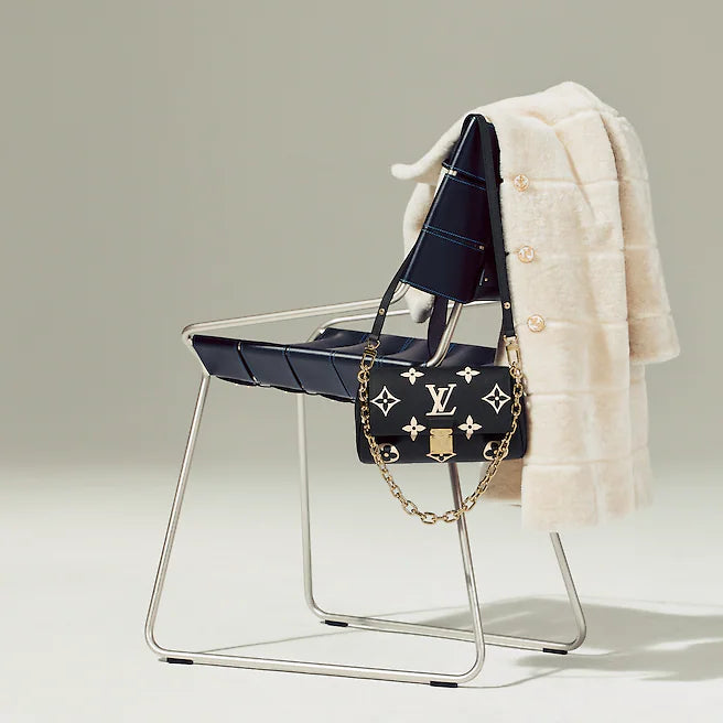 The Favorite bag is a stylish baguette shoulder bag in supple grained Monogram Empreinte leather. Feminine pleats add couture elegance, while the gold-color magnetic closure reflects Louis Vuitton heritage. Removable and adjustable strap allows short-shoulder or crossbody wear; detachable gold-color chain adds a glamorous evening option.