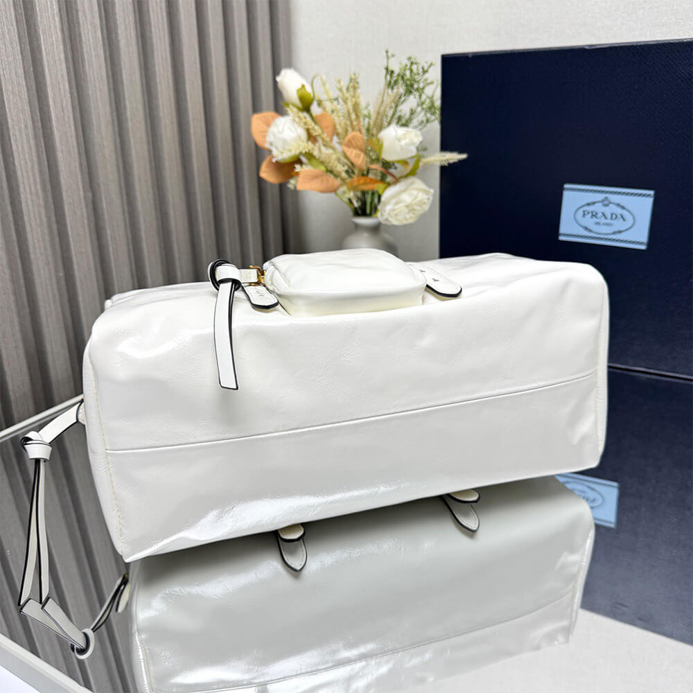 Leather Barrel Bag (White)
