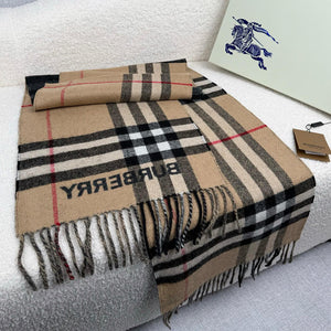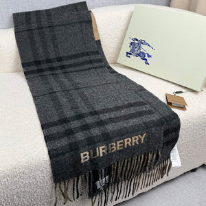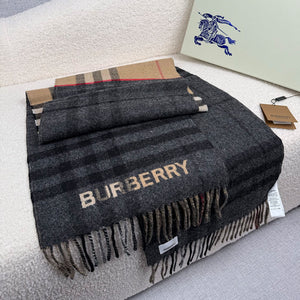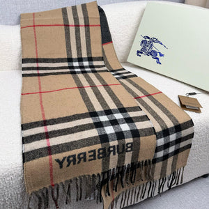 - Merkmale: Rechteckige Form, Fransen an beiden Enden und gewebter Burberry-Schriftzug am Ende.
