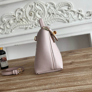 - Farbe/Beschläge: Hellrosa mit goldfarbenen Beschlägen