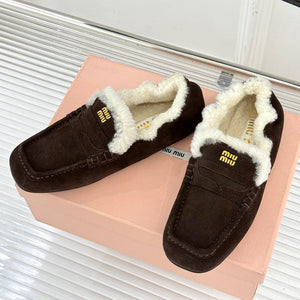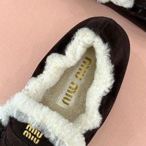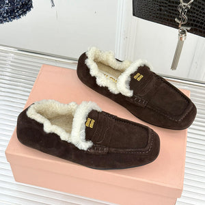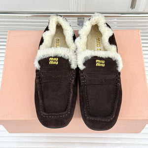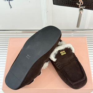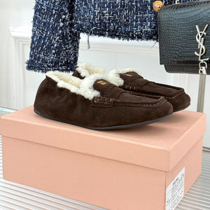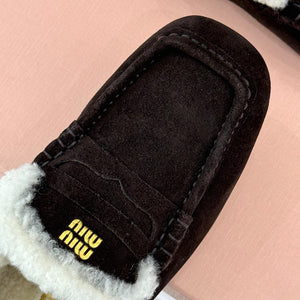 Diese detailgetreuen , hochwertigen 1:1-Replika- Loafer in einem satten Dunkelbraun zeichnen sich durch ein kuscheliges Lammfellfutter und ein markantes Schürzendetail aus.
