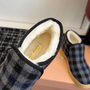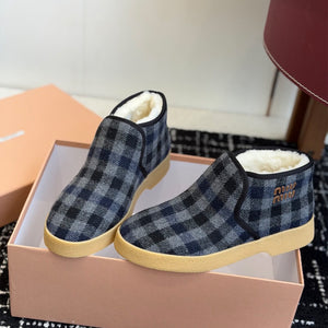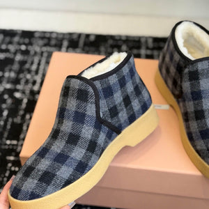 Diese stylischen, super hochwertigen 1:1-Replika- Stiefel präsentieren sich in einer dynamischen Blau/Schwarz -Farbkombination und verfügen über ein warmes Shearling-Futter.