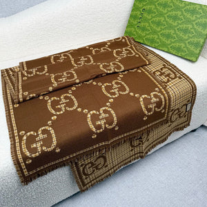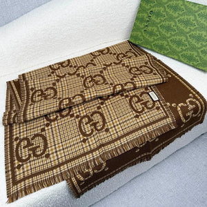 Une large écharpe d'inspiration design, bicolore ou à motifs, dans les tons marron et beige. Cette reproduction de haute qualité offre une grande polyvalence grâce à sa taille adaptée et un style chaleureux et neutre.