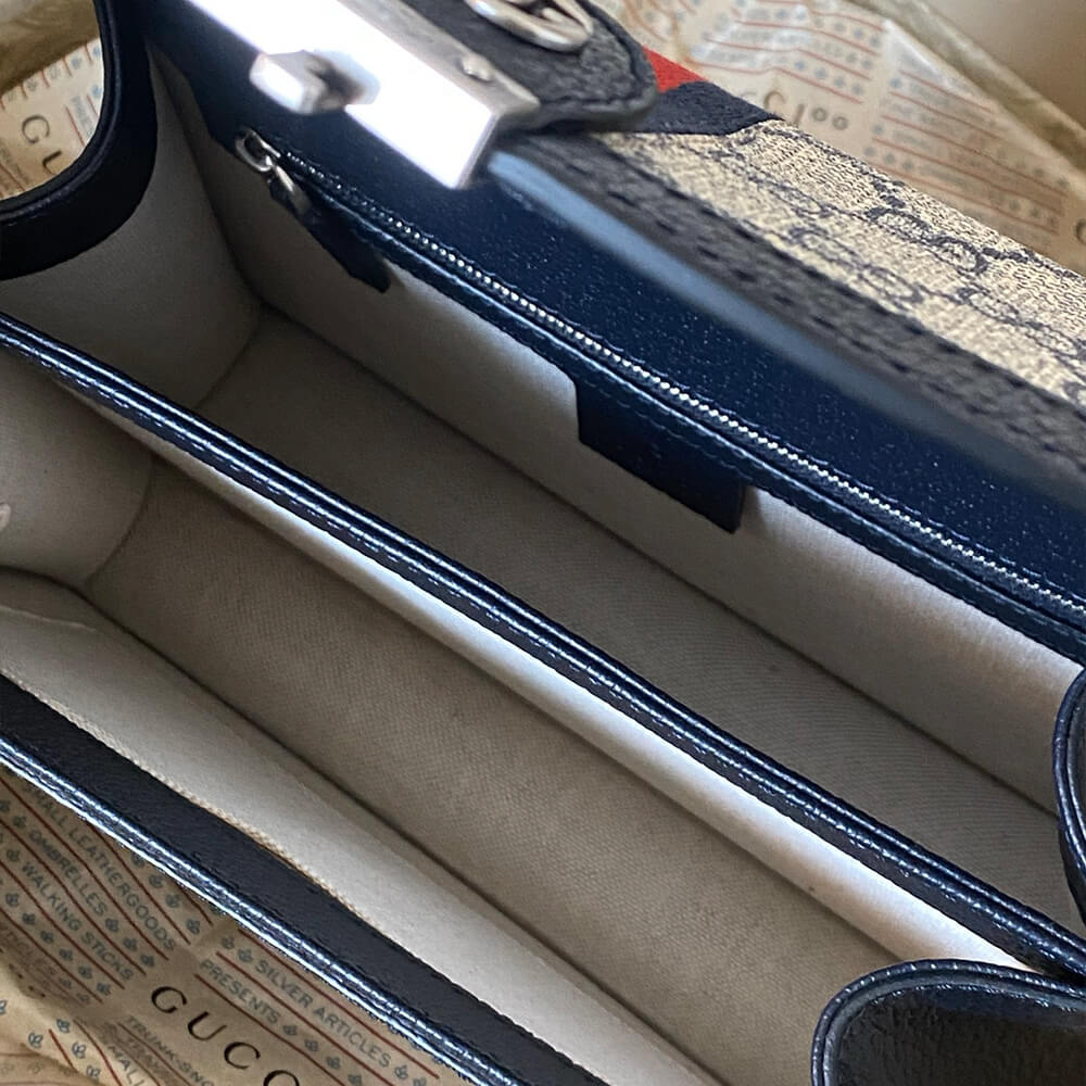 Matière : Toile GG Supreme beige et bleue avec finitions en cuir bleu