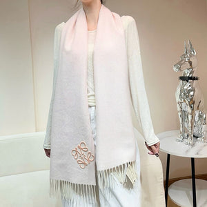 Une écharpe féminine d'inspiration créateur, rose tendre, mêlant laine et cachemire. Cette reproduction de haute qualité présente un jacquard double face à motif Anagram bicolore.