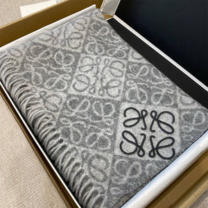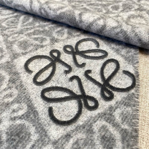 Écharpe douce et neutre, d'inspiration créateur, dans un gris clair, mêlant laine et cachemire. Cette reproduction de haute qualité présente un jacquard double face à motif Anagram bicolore.