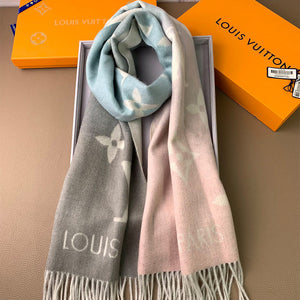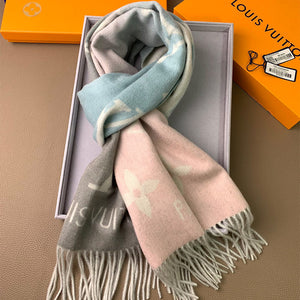 Une écharpe luxueuse, inspirée des créateurs haut de gamme, dans un dégradé unique Bleu Rose. Confectionnée en cachemire 100 %, elle présente un tissu jacquard à motif monogramme et une douce bordure à pompons.