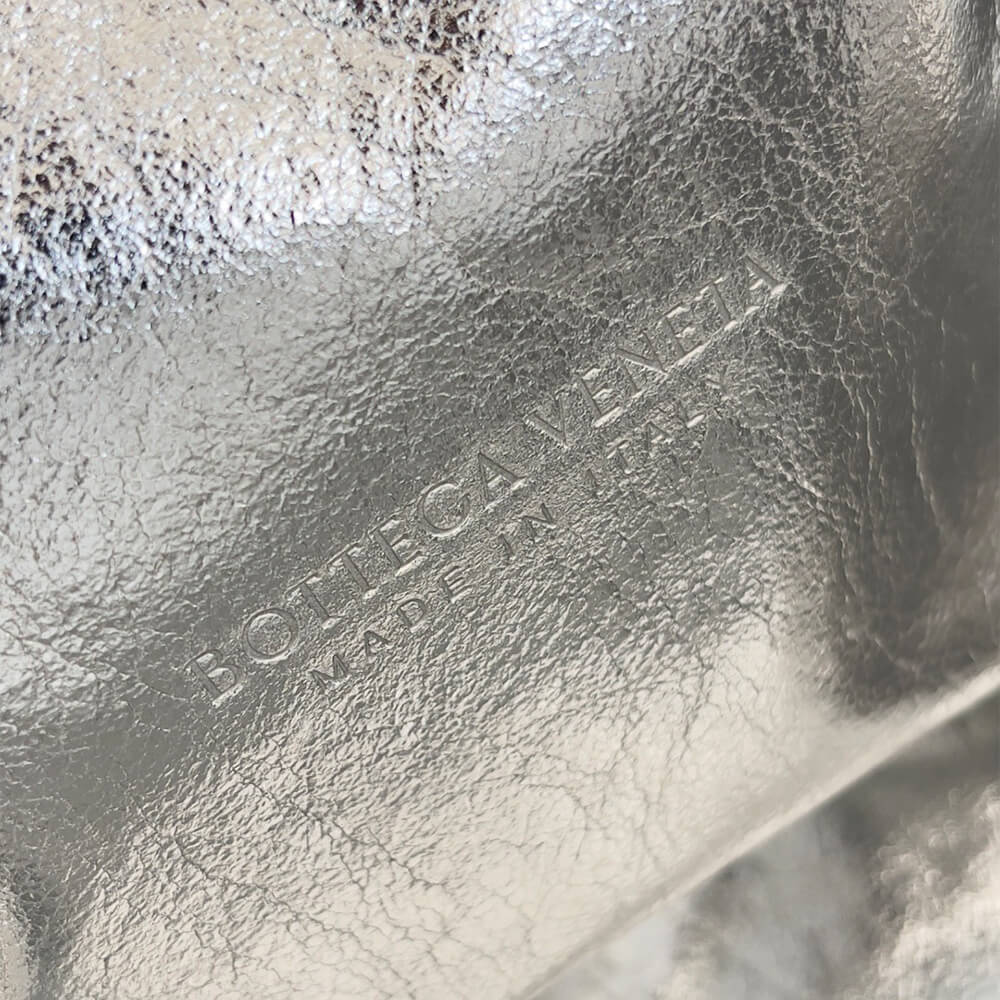 Style: Padded Intrecciato leather clutch with leather braided metal chain