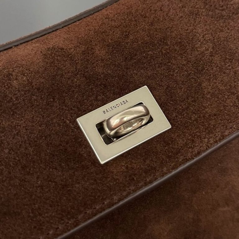 Color & Material: Light Espresso, Waxed suede calfskin and smooth calfskin, aged-silver hardware
