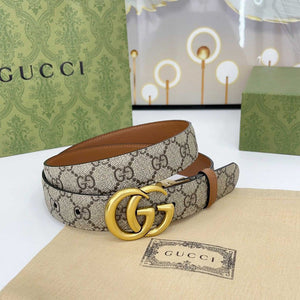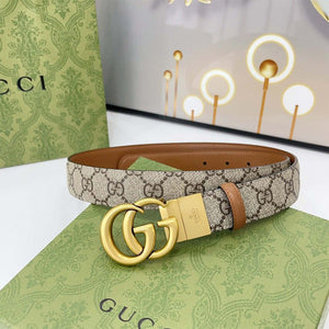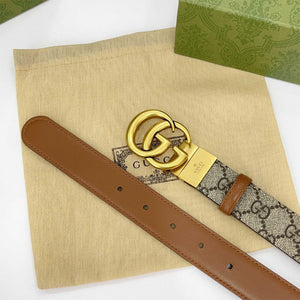 - Color/Material: Reversible: Beige/dark brown GG Supreme on one side, light brown leather on the other