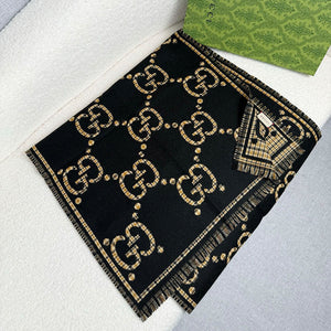 A wide, designer-inspired scarf in a dual-toned or patterned design of Black and Beige. This high-quality reproduction is sized for versatile wrapping and offers a sophisticated, contrasting look.