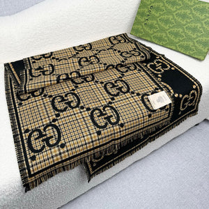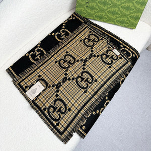 GG Plaid Wool Scarf