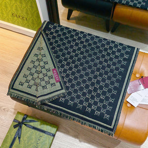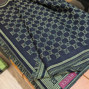 A wide, designer-inspired scarf in classic Black. This high-quality reproduction is sized for versatile wrapping and provides excellent warmth.