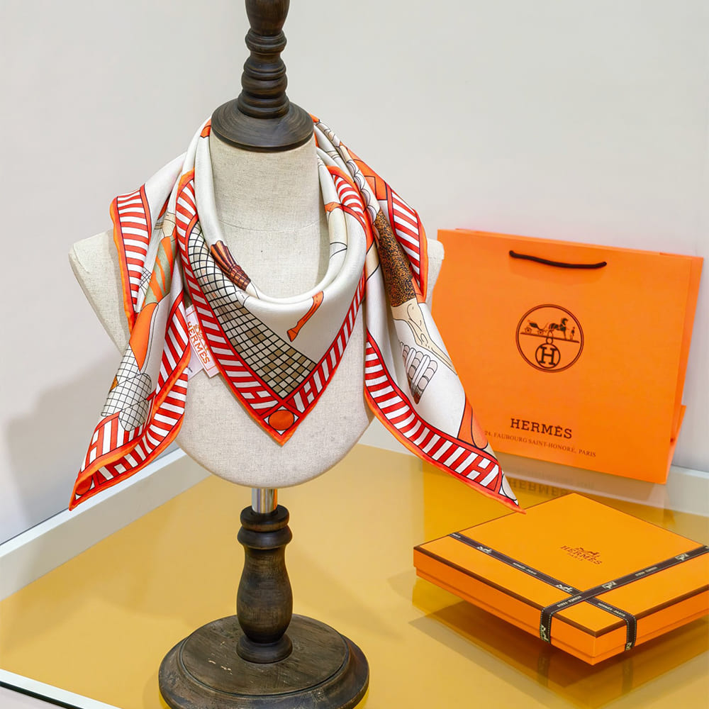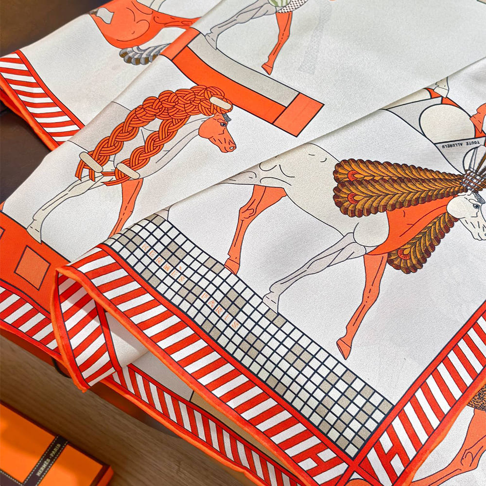 Super high-end grade 1:1 mirror copy scarf in White/Ripe Orange/Grey.