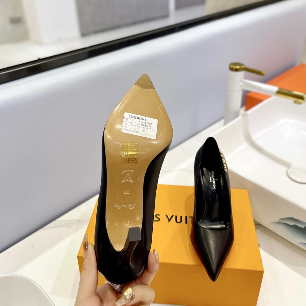 Elevate your look with this 1:1 copy replica shoe (Style: 1AB1OD) in classic Black. Crafted from smooth Calf leather, this sophisticated heel features signature Monogram studs, a sleek leather outsole, and a comfortable 9.5 cm heel height.