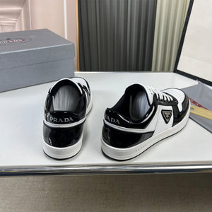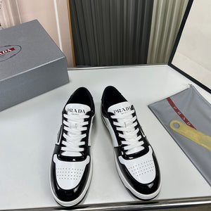 These striking Super high-quality 1:1 copy replica shoes are crafted from glossy Patent leather and presented in a classic White and Black color combination.